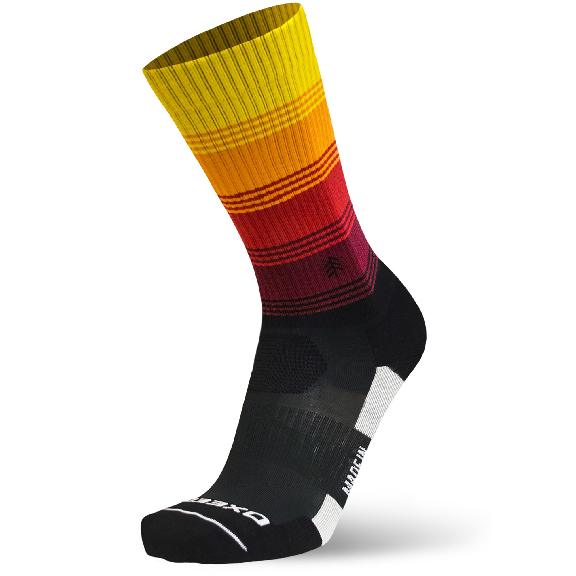 The union between the two yarns in the Oxeego sock helps the body temperature regulation in every situation, thanks to the increase of blood's microcirculation and to the absorption of humidity in the treated area.
