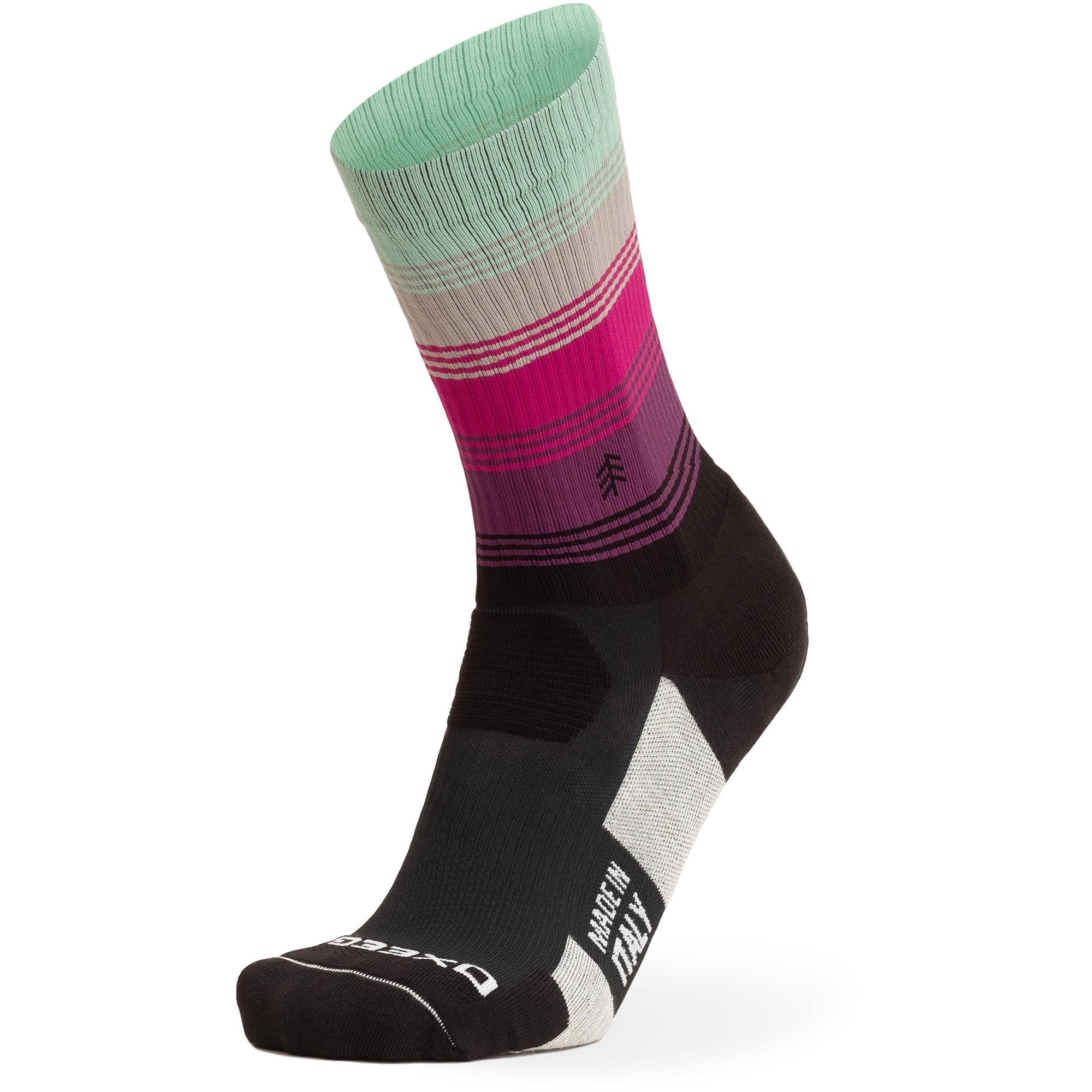 The union between the two yarns in the Oxeego sock helps the body temperature regulation in every situation, thanks to the increase of blood's microcirculation and to the absorption of humidity in the treated area.