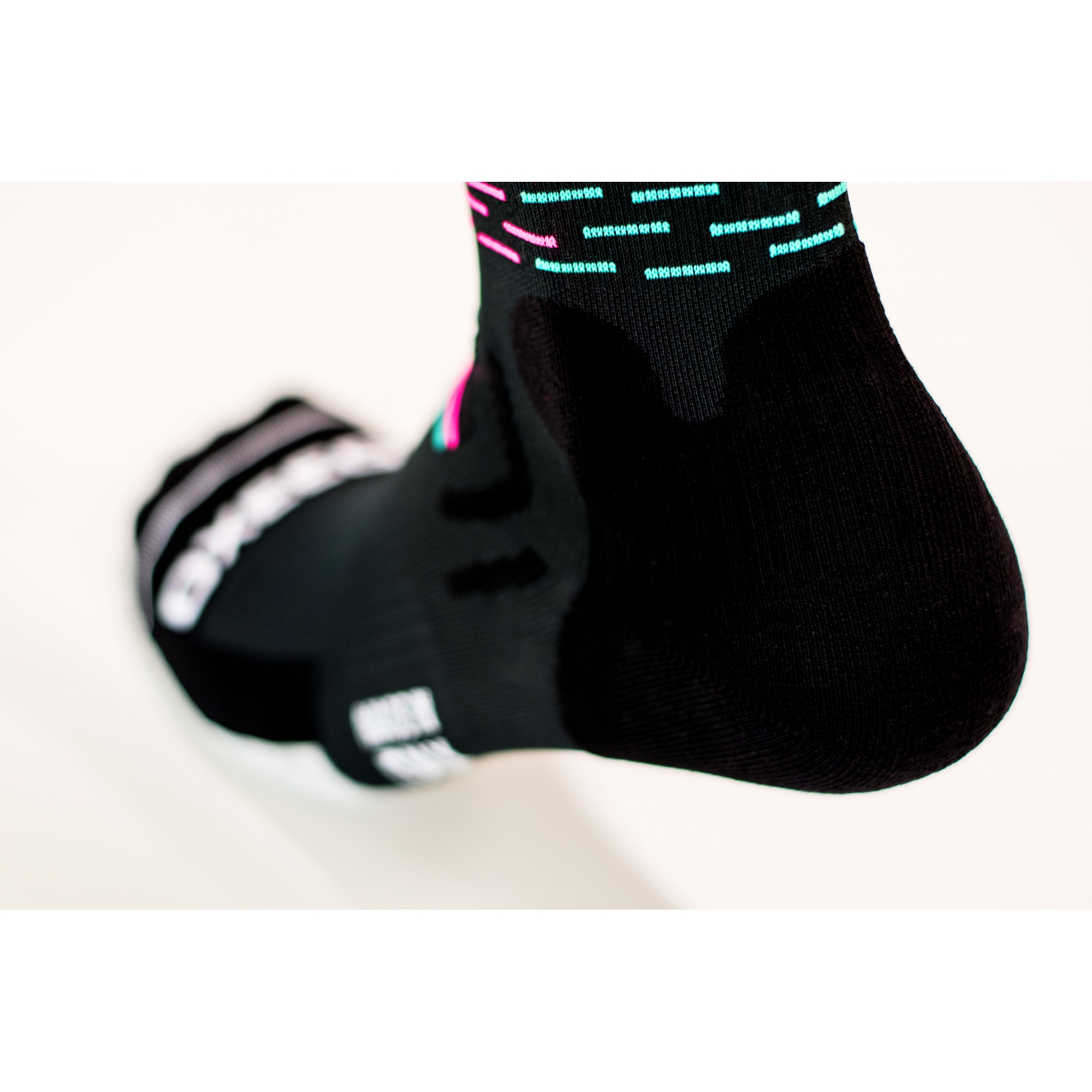 Thanks to the exclusive material of our yarns (Celliant technology) and the graduated compression, the Oxeego Trail sock improves blood flow by extending the oxygenating action on the whole foot, reducing the sensation of soreness and swelling.